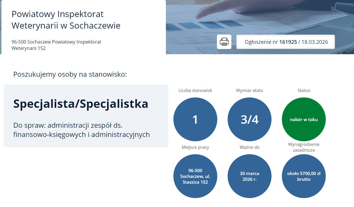 Informacja o naborze na stanowisko Specjalista/Specjalistka